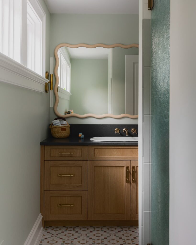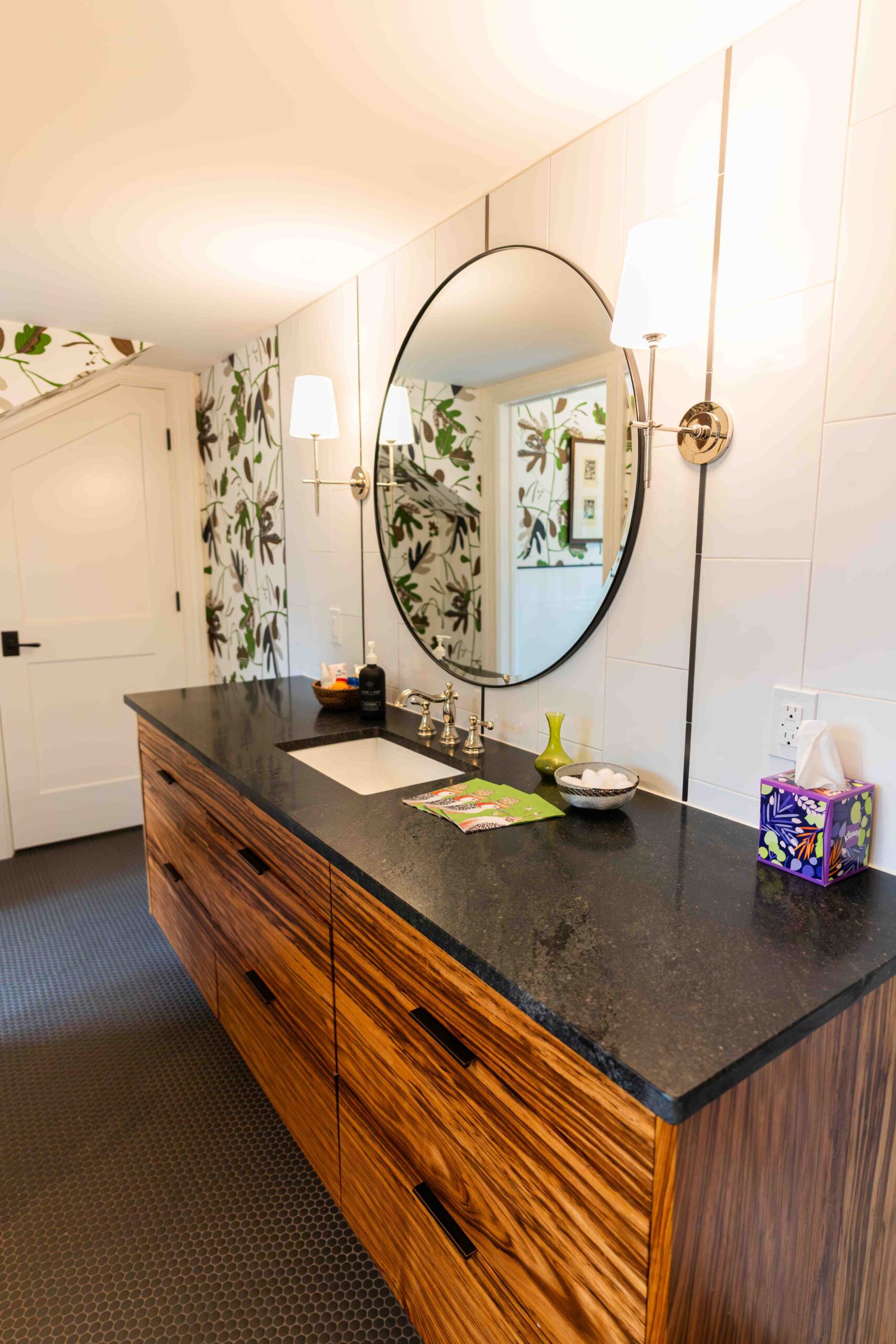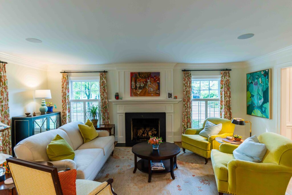 We collaborated with architects and interior designers for two years to construct a new home with a "timeless appeal" and a "jovial old soul". The interior design emphasizes vibrant colors and includes amenities like a golf simulator room and an indoor basketball court. The home also features a master suite that focuses on the outdoor greenspace, a husband's study with a "clubby vibe," and a second-floor reading nook. See more here.
