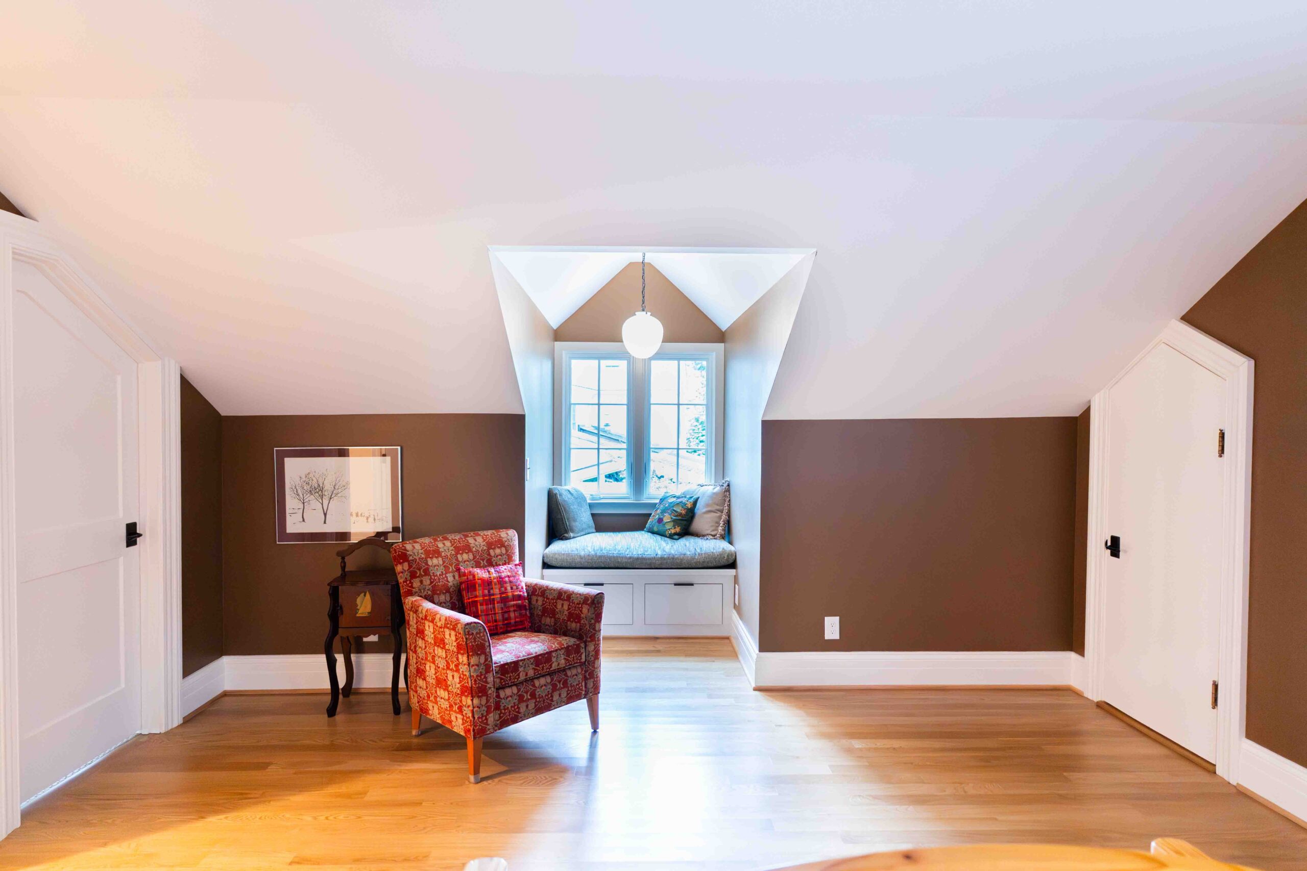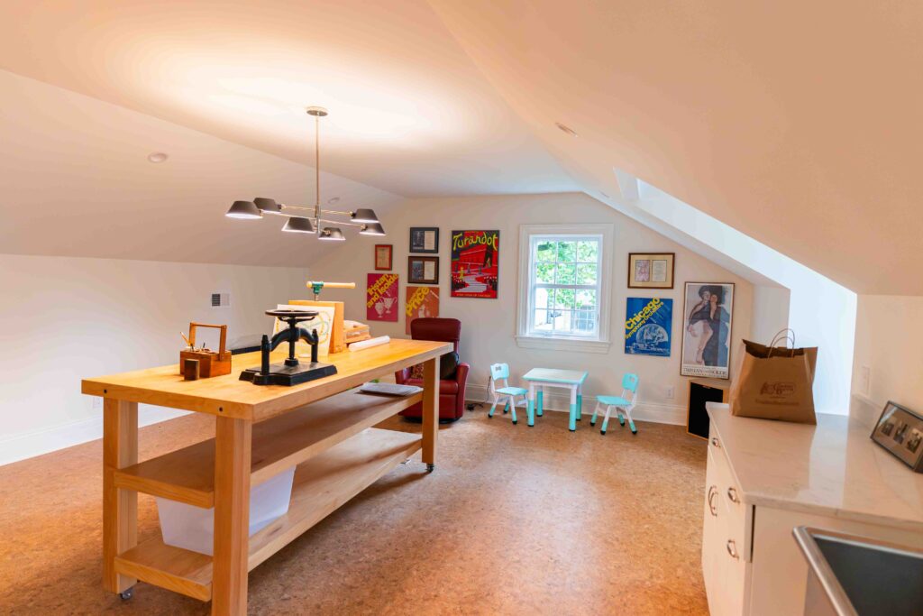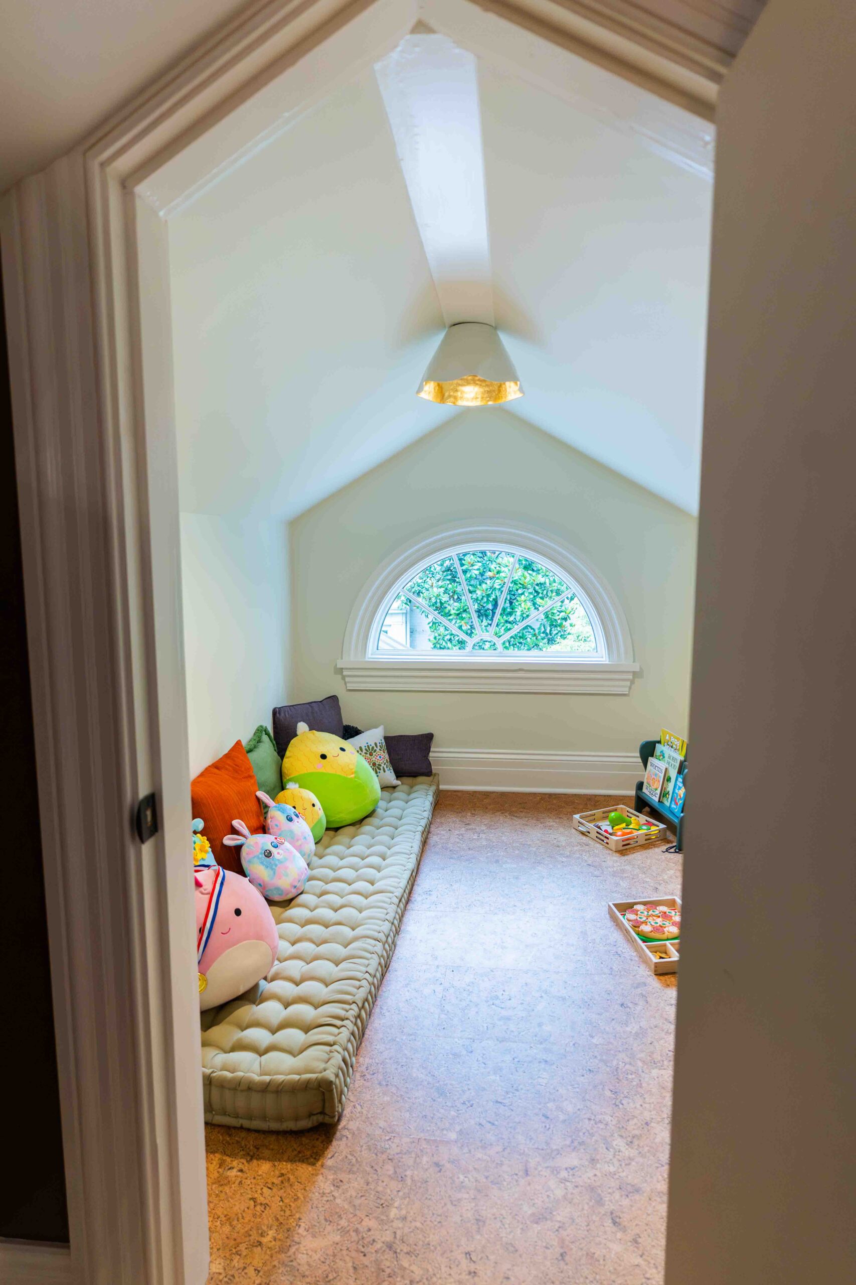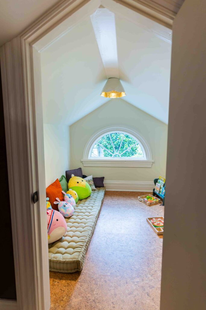 We added 670 sq ft of living space above the garage, creating a versatile new area complete with a bathroom, bunkroom, and play area.
