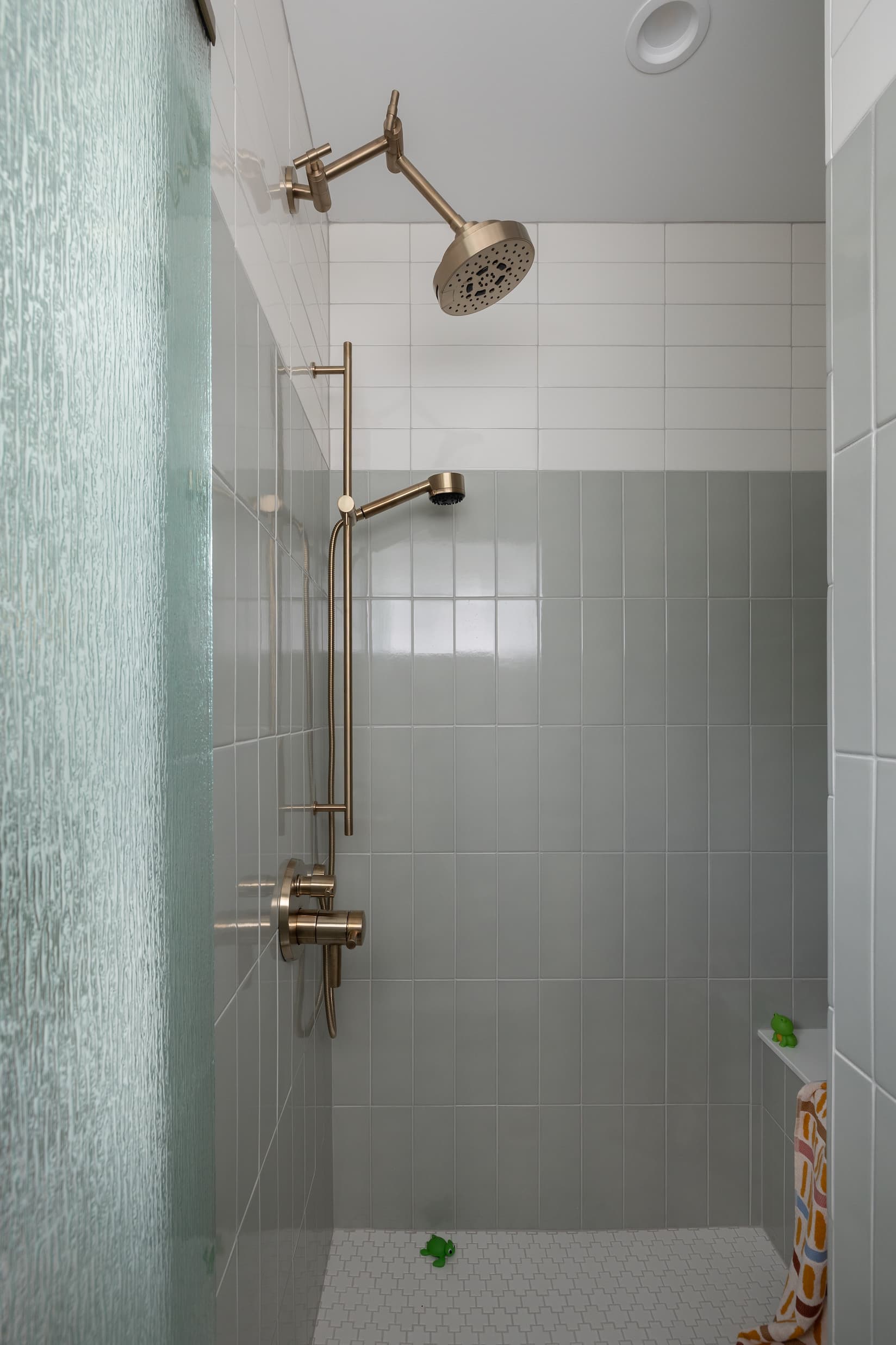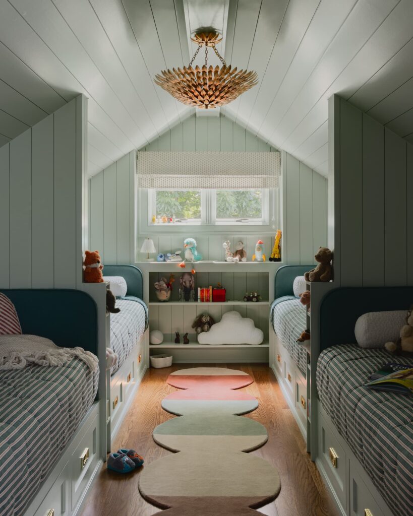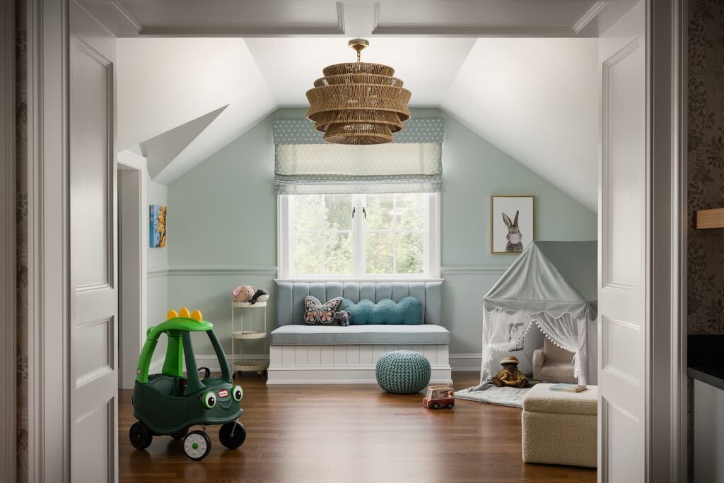We added 670 sq ft of living space above the garage, creating a versatile new area complete with a bathroom, bunkroom, and play area.