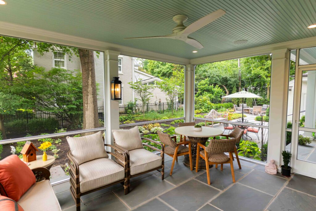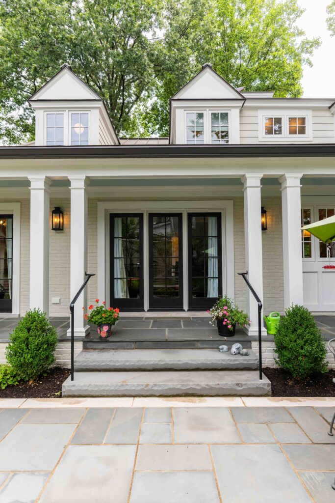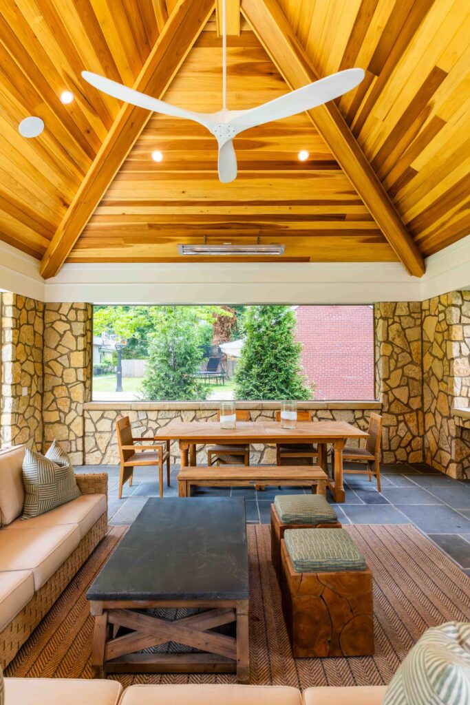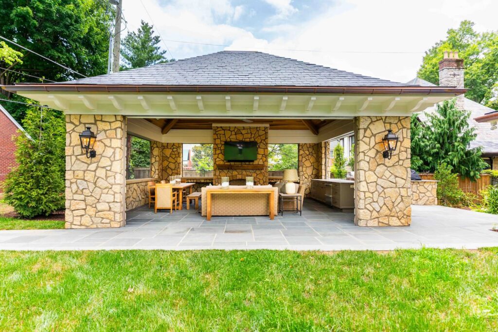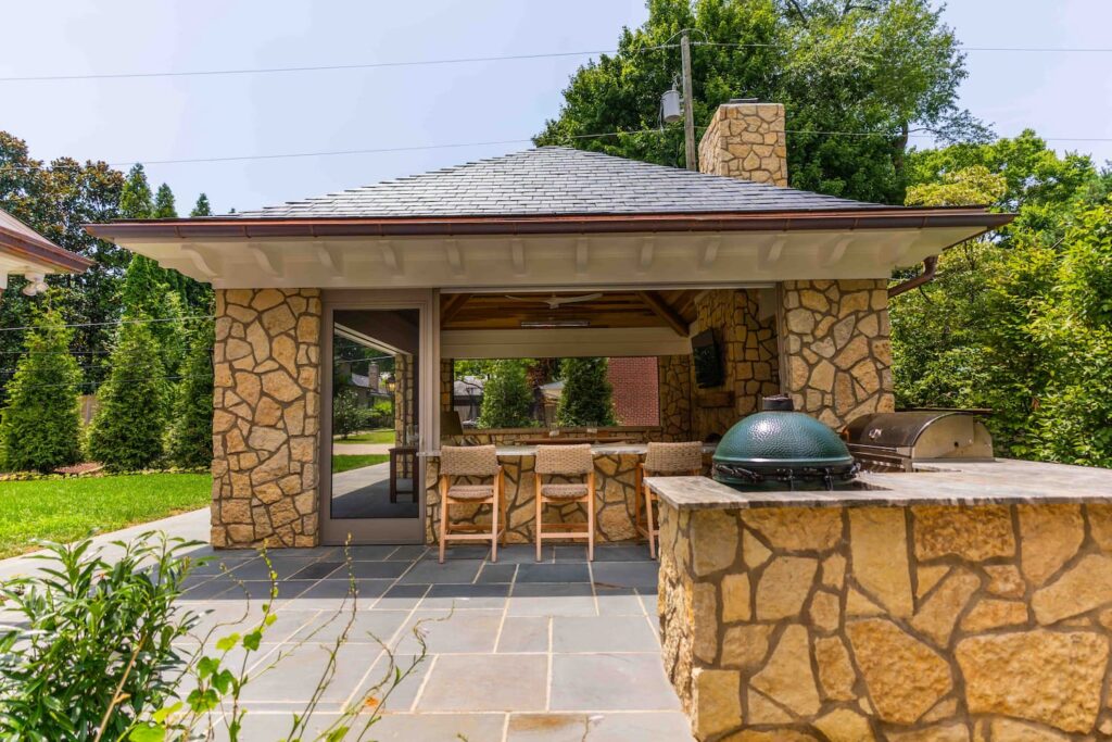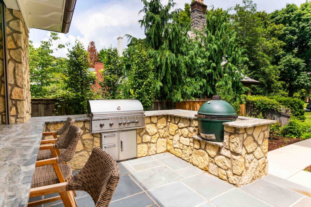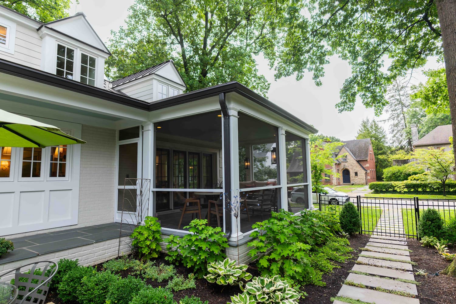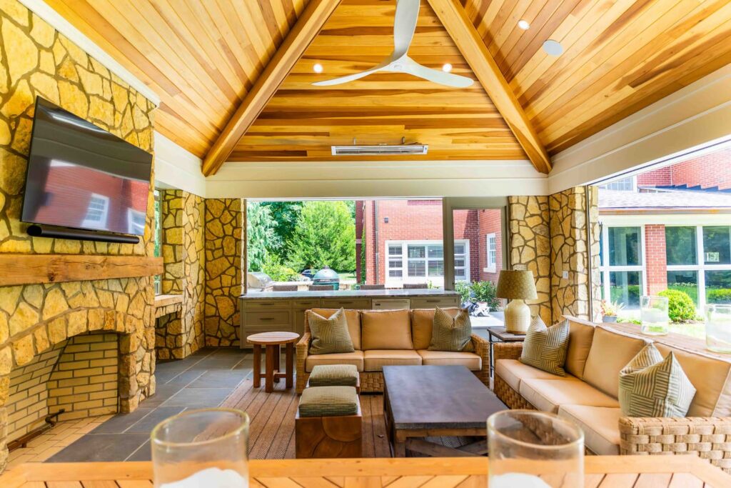We enhanced this home's outdoor living space by adding a new covered porch and grilling patio, both featuring beautiful limestone. The space is complete with a cozy fireplace and a bar area perfect for entertaining.